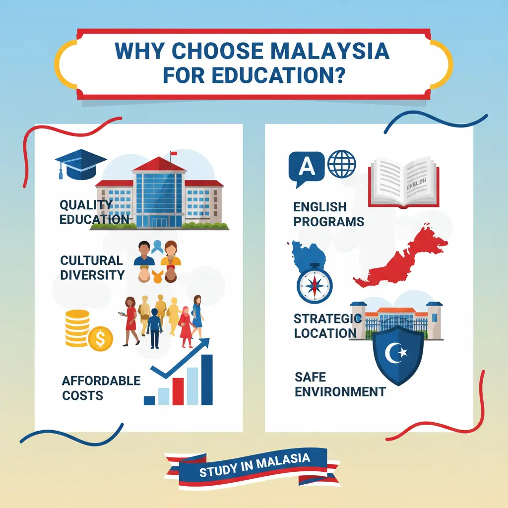 Affordable world-class education, English-medium instruction, globally recognized degrees, and a multicultural environment.